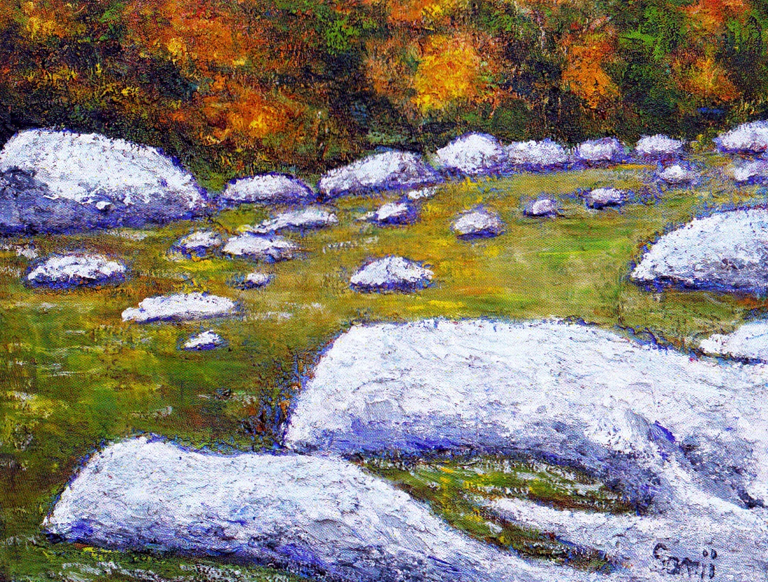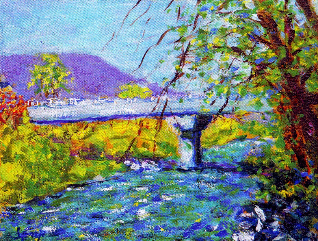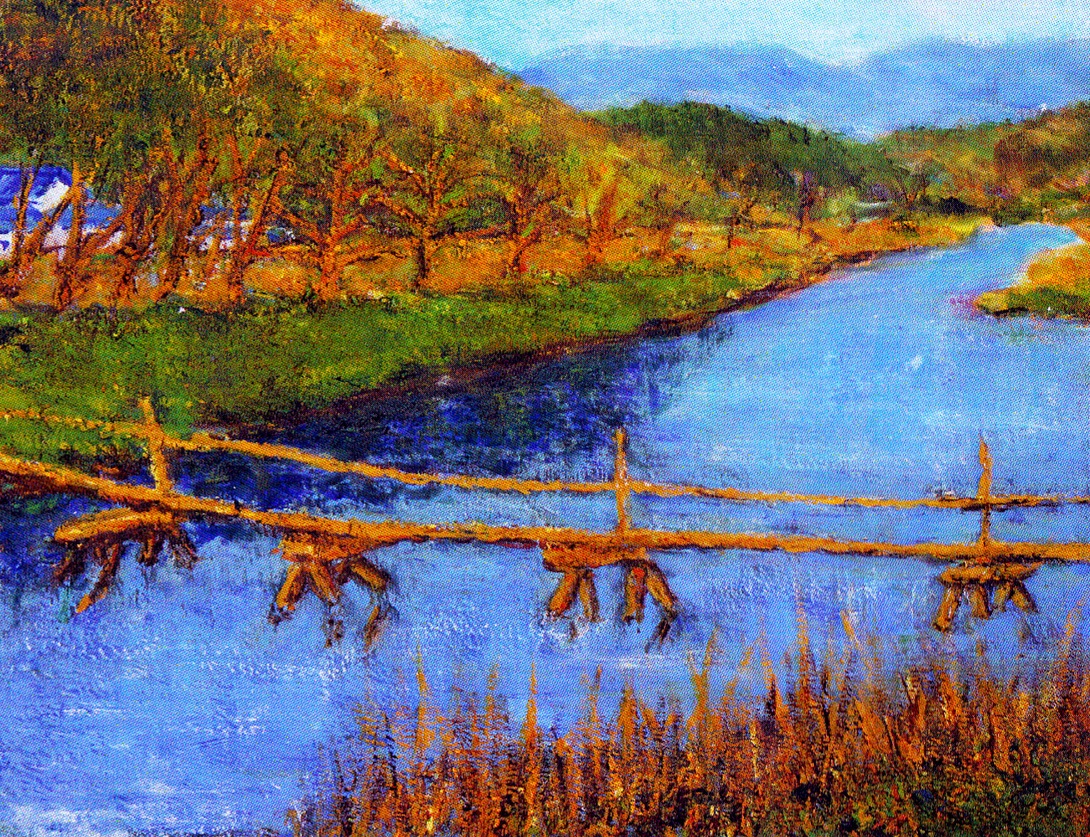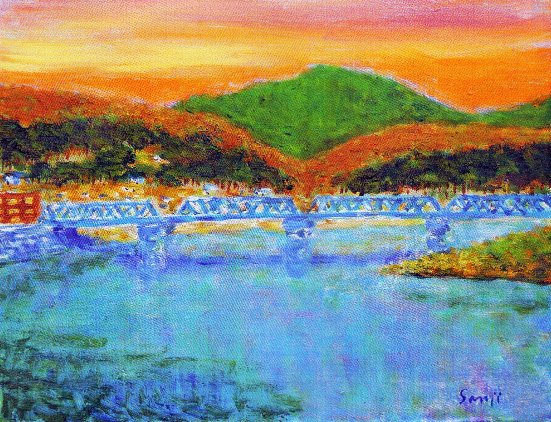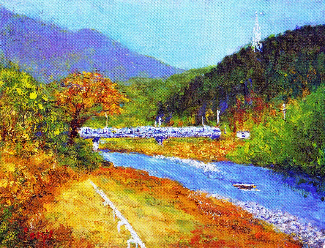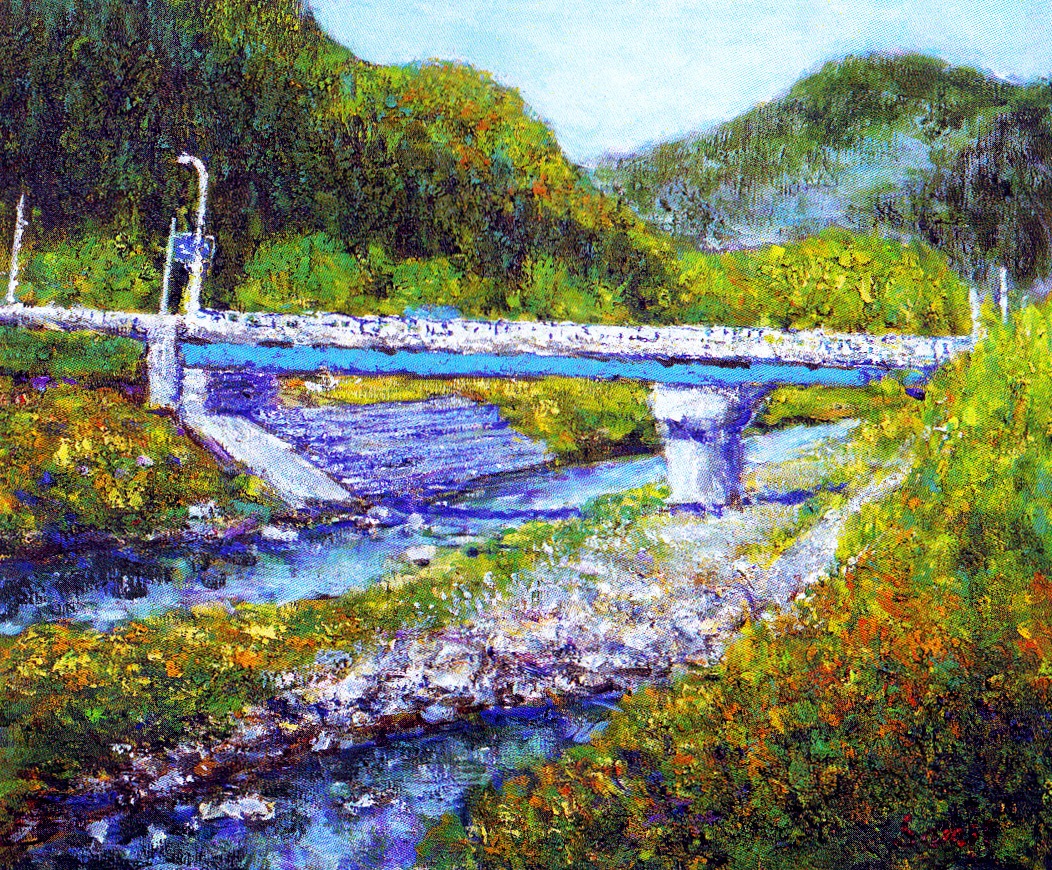 源流から河口まで変化に富んだ表情を見せてくれる、美しい四季折々の風景をキャンバスに表現しています。