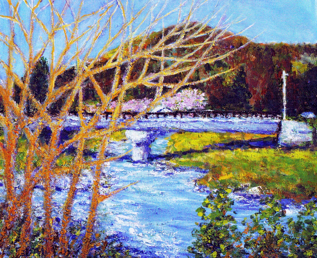 源流から河口まで変化に富んだ表情を見せてくれる、美しい四季折々の風景をキャンバスに表現しています。
